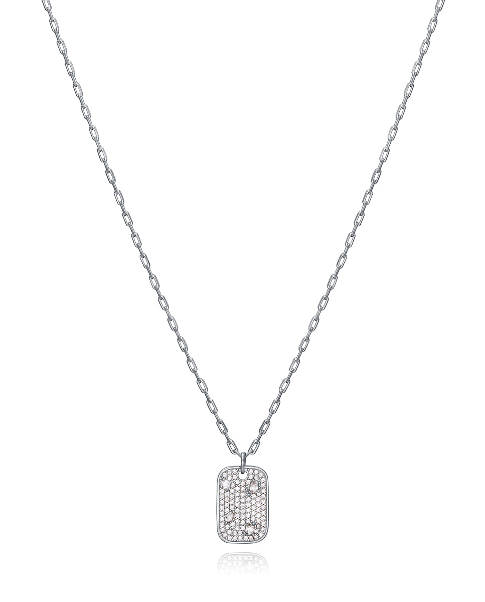 Collar Elegant de plata de ley con baño de rodio y placa colgante con circonitas blancas