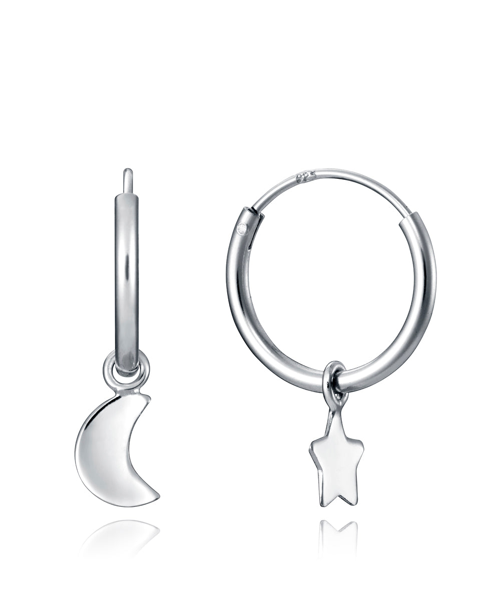 Pendientes Trend de plata de ley con charms de luna y estrella extraíbles