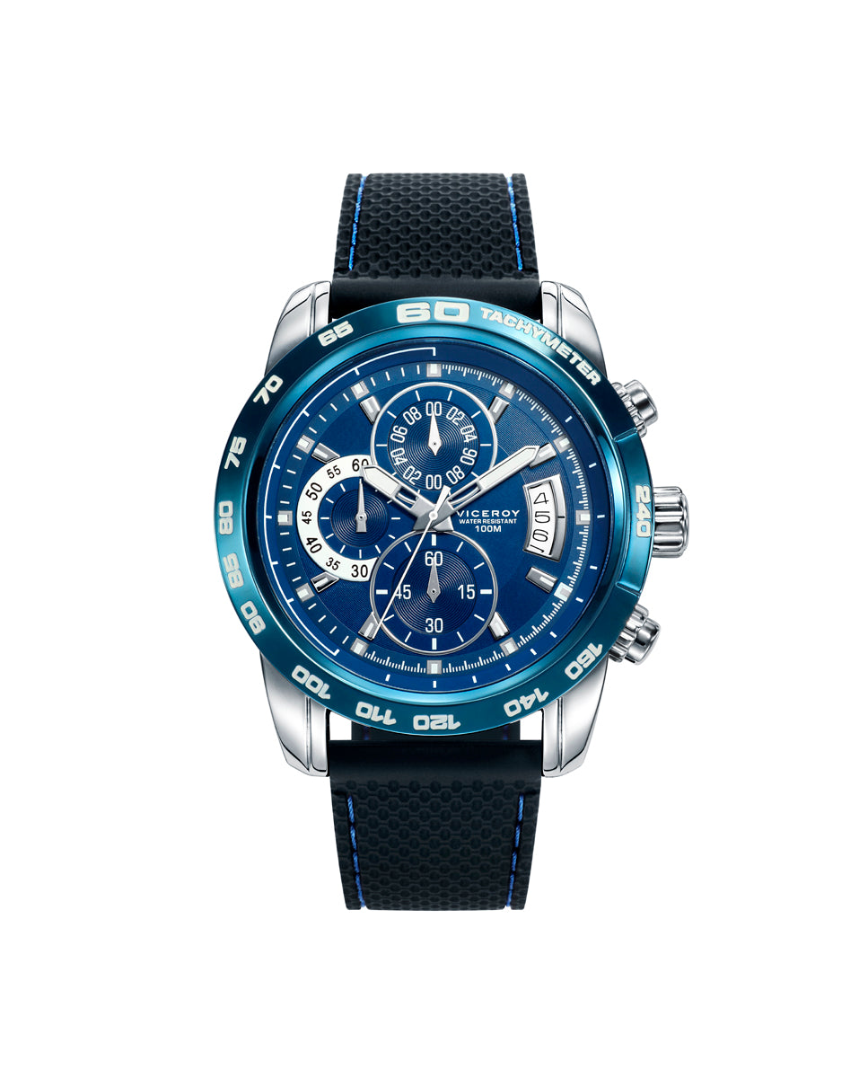 Reloj de hombre Heat cronógrafo de acero con IP azul y correa de silicona negra