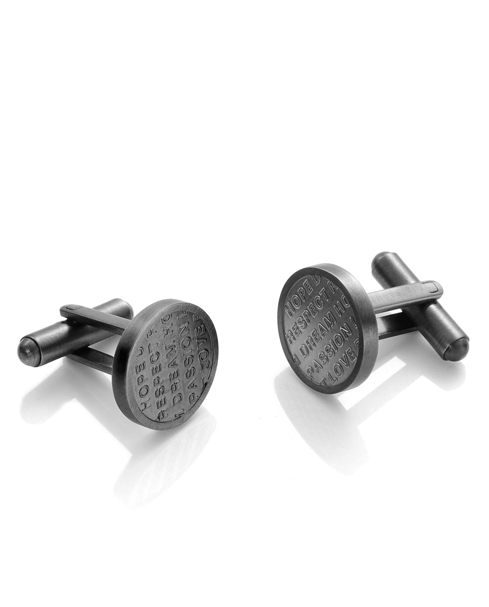 Gemelos de hombre Air de acero redondos con palabras grabadas