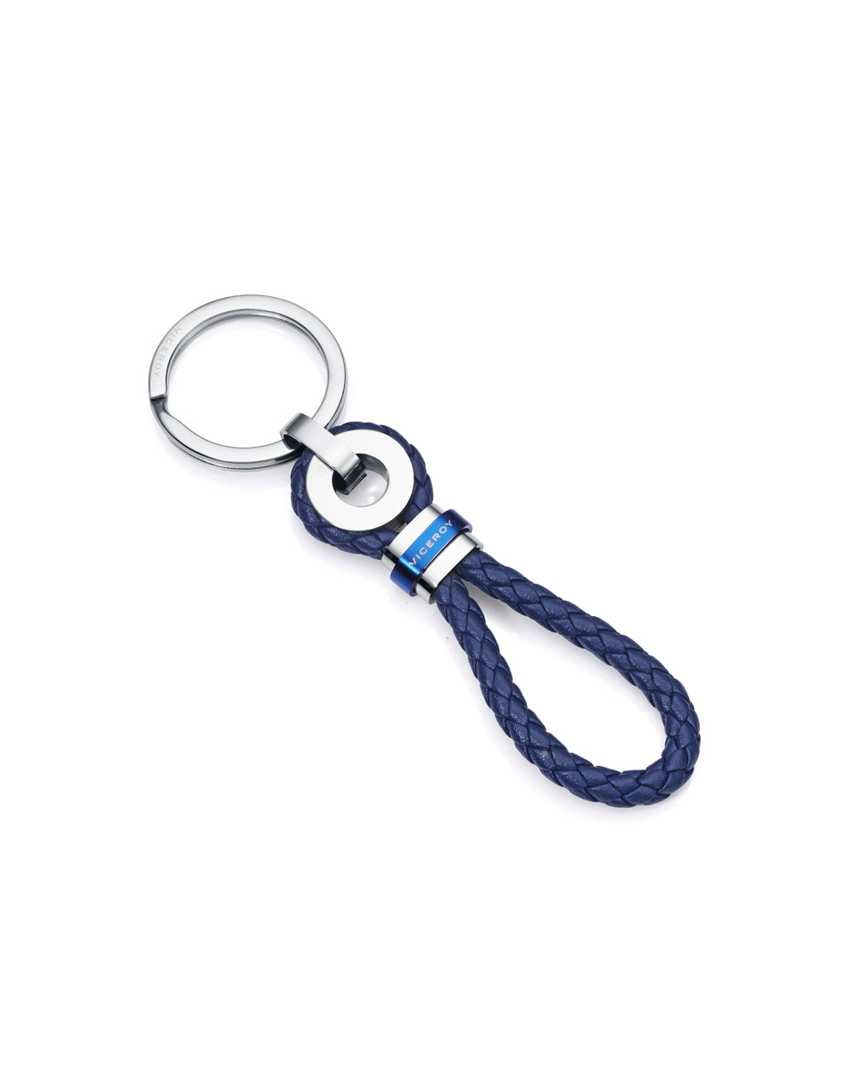 Llavero Air de acero en Ip azul con cuero trenzado en color azul