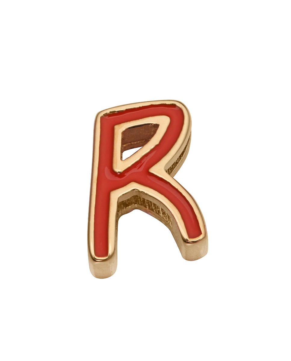 Motivo letra R para pulsera de niña en acero dorado y esmalte