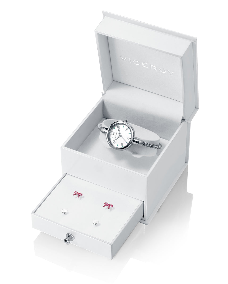 Set de reloj y pendientes de Niña Viceroy Sweet de acero y malla milanesa tubular