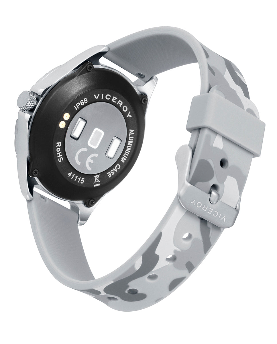 Smartwatch infantil Smartpro con correa de silicona negra y correa adicional con estampado de camuflaje gris