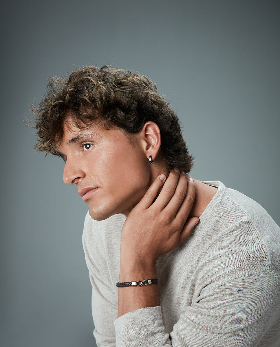 Límpiala con un paño especial para joyas o con un poco de agua templada con jabón neutro, evitando que la piel o el cordón entre en contacto con el agua.