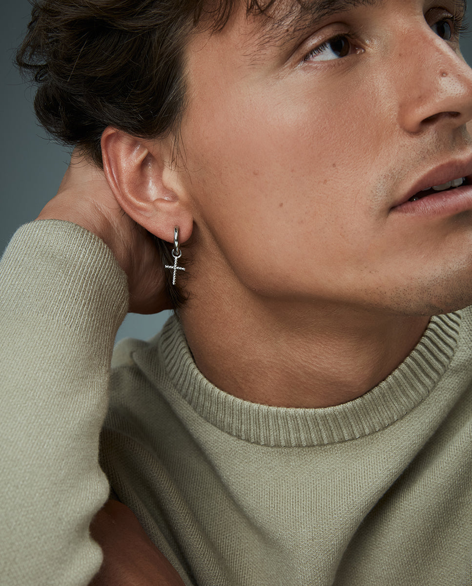 Pendientes de hombre de acero con cruz colgante