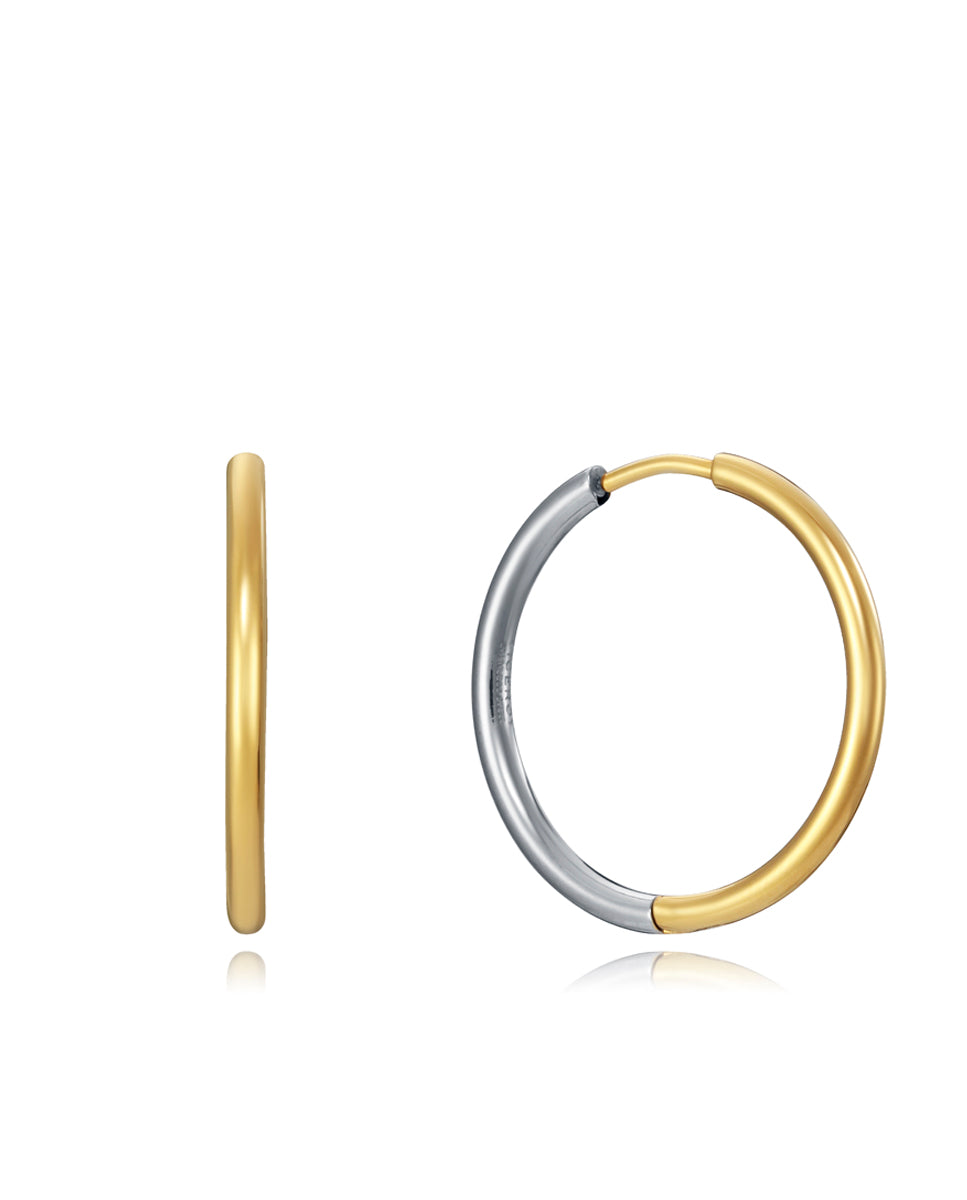 Pendientes Air de acero bicolor en color acero e IP dorado en forma de anilla