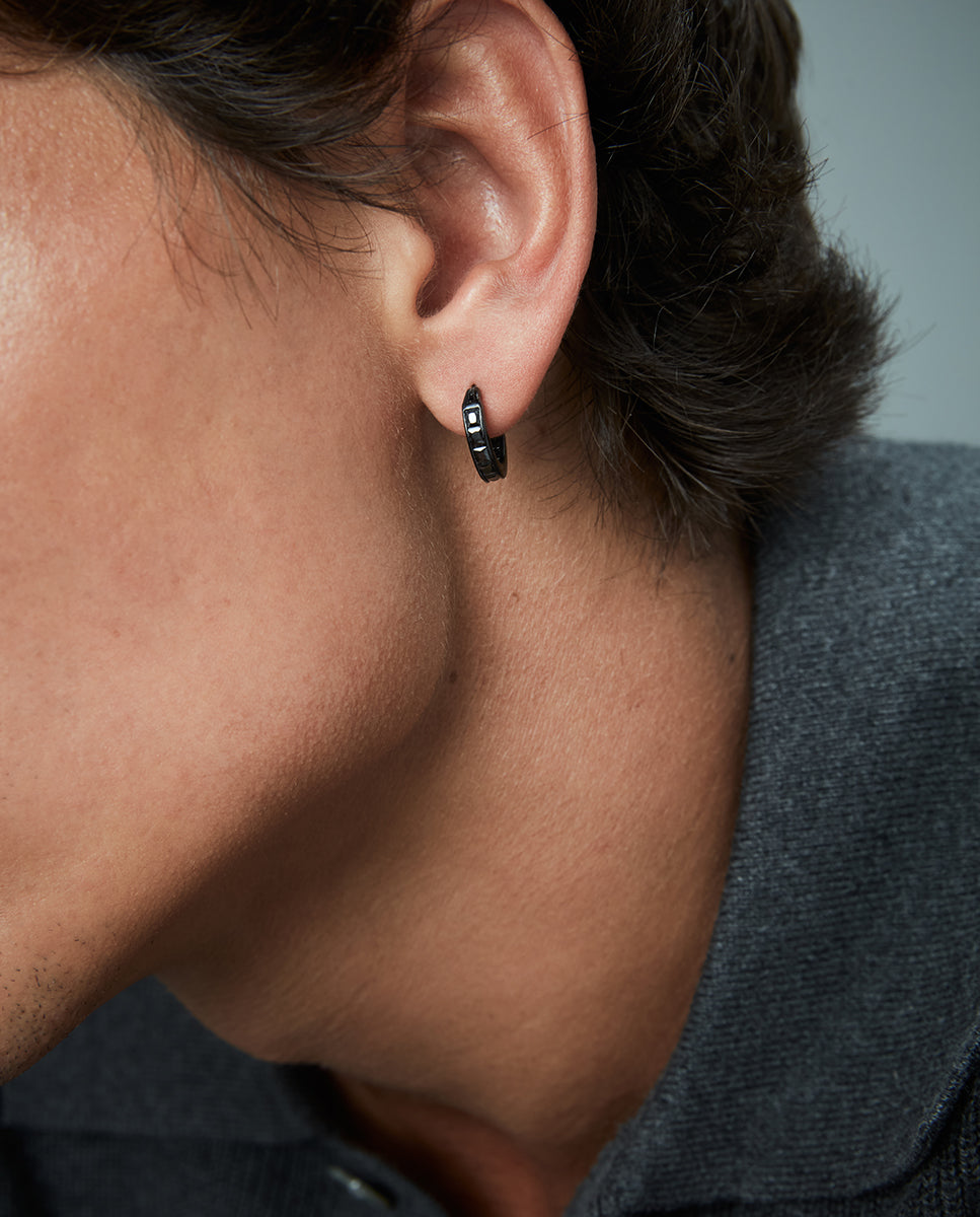 Pendientes de hombre de acero Ip negro criolla con circonitas negras