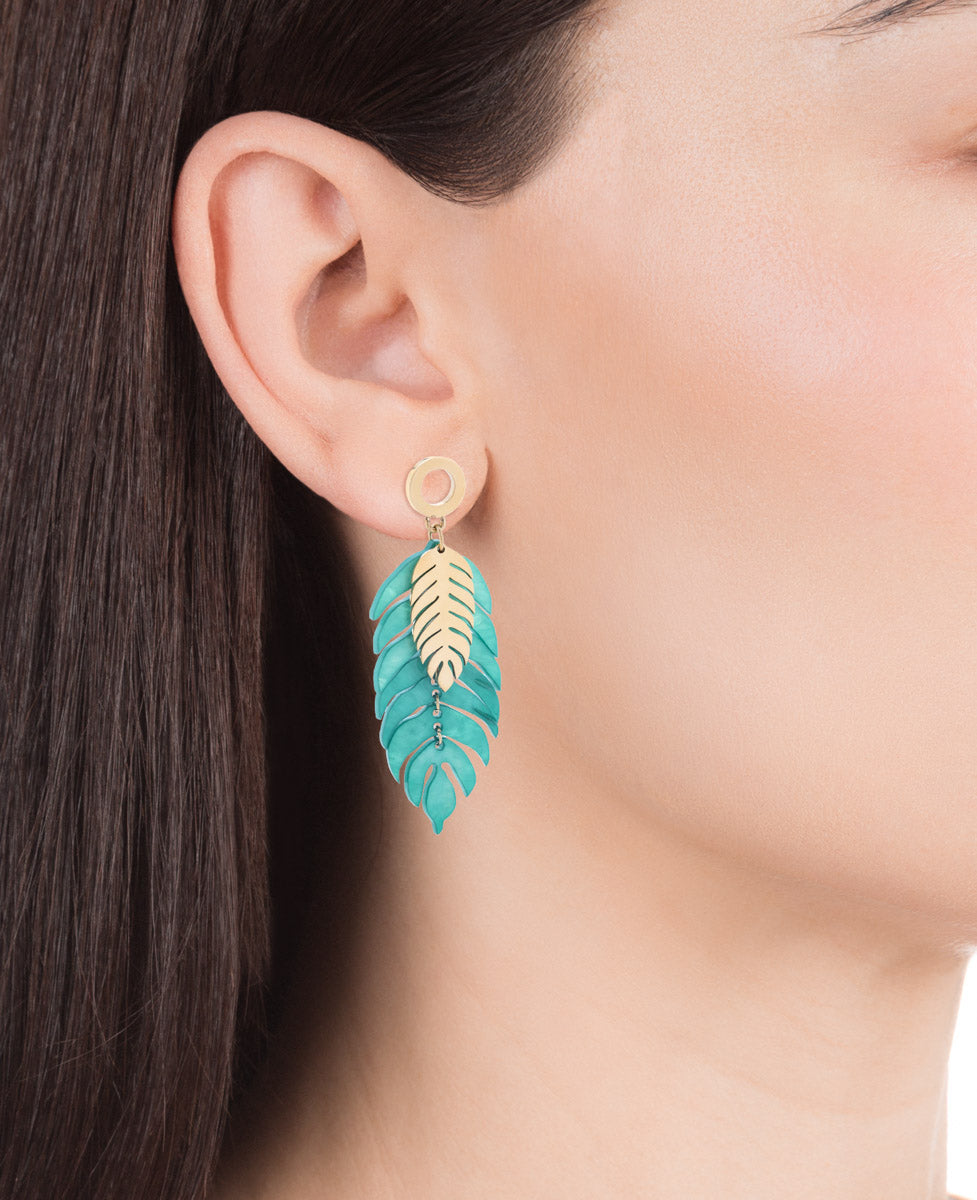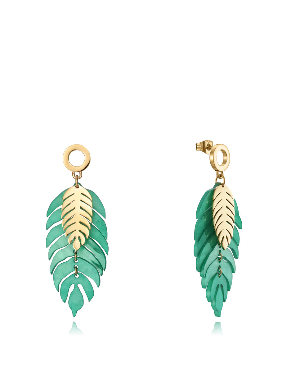 Pendientes Chic en IP dorado en forma de dos hojas con resina verde