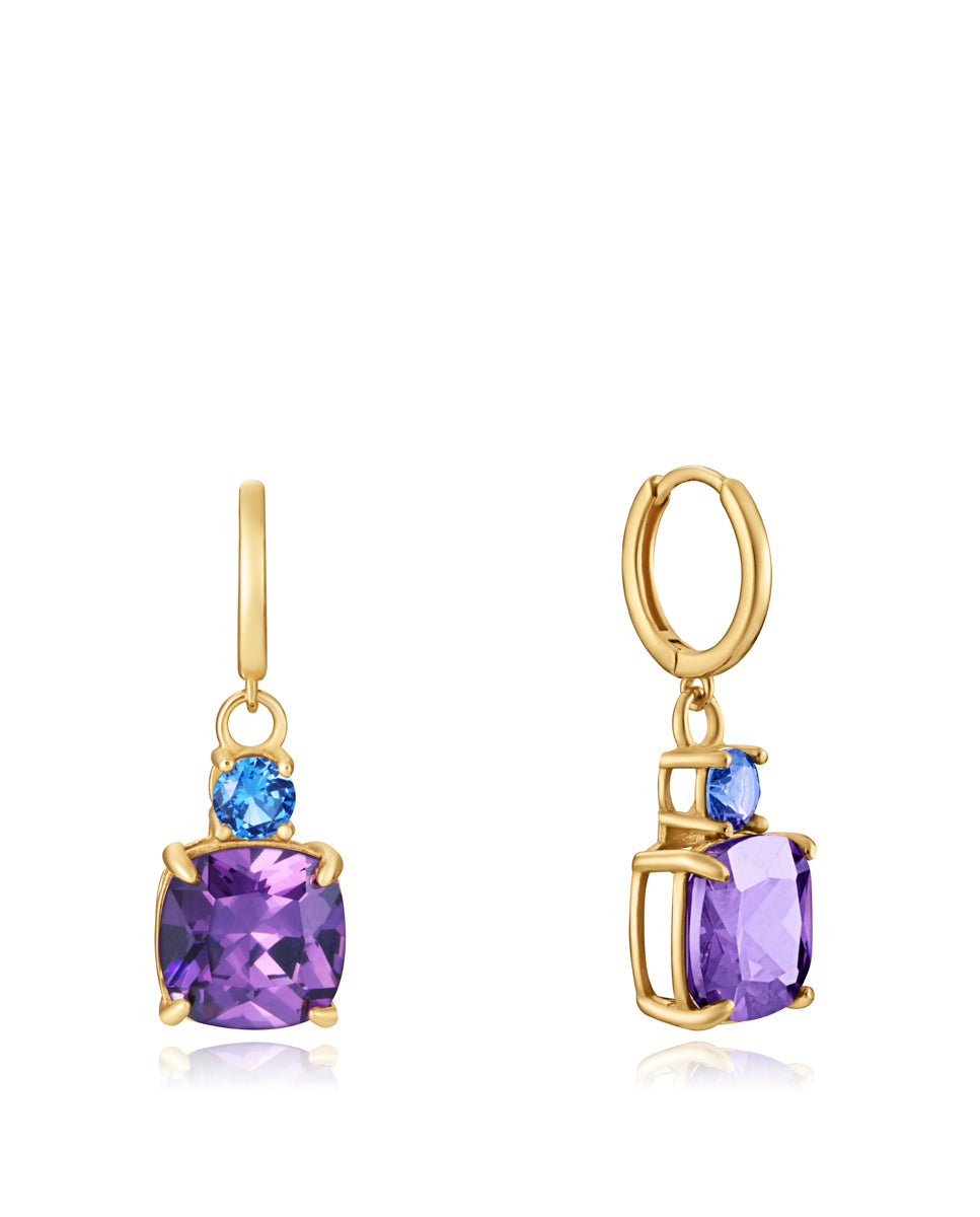 Pendientes Elegant de plata de ley con baño de oro y cristales en azul y morado