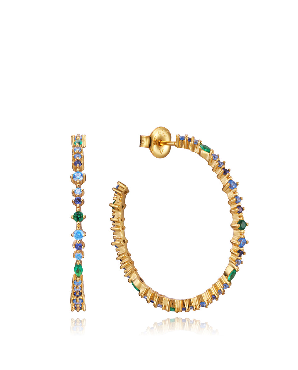 Pendientes Elegant de plata de ley bañados en oro aro con circonitas de colores