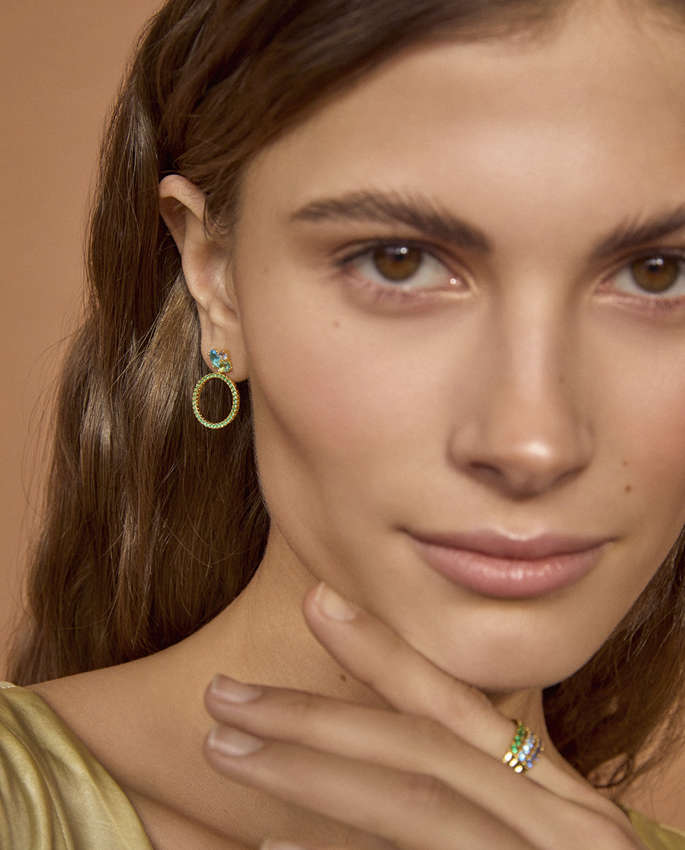 Pendientes Elegant de plata de ley bañados en oro con circonitas azules y verdes