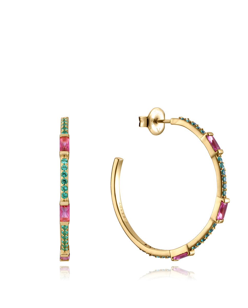 Pendientes Elegant de plata de ley con baño de oro y circonitas de color rosas y verdes