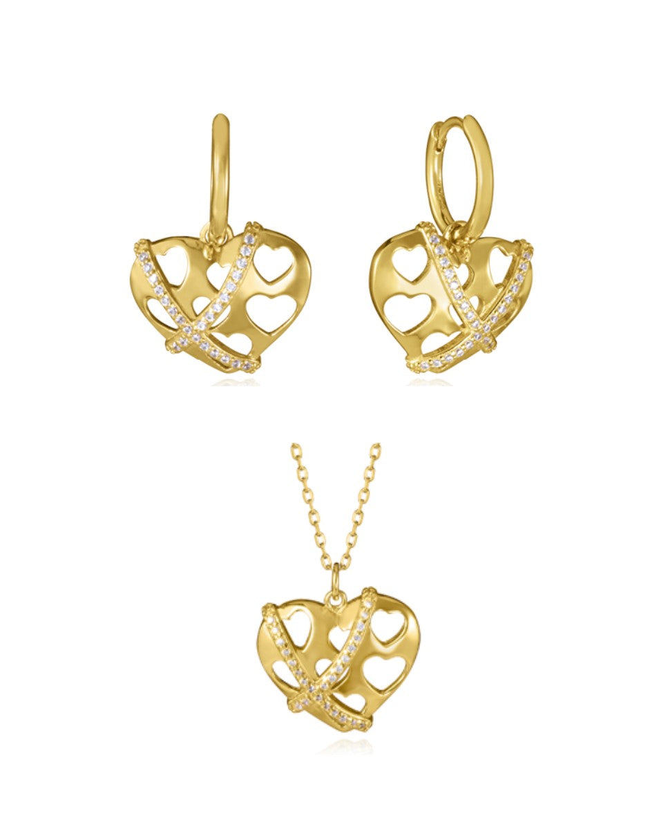 Pendientes de plata de primera ley con baño de oro aro con colgante