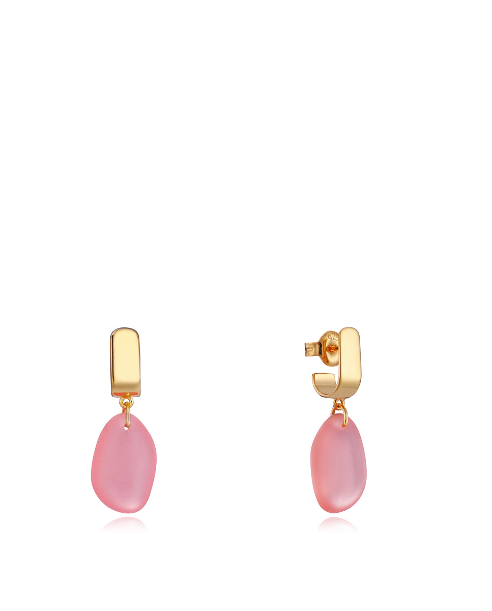 Pendientes Elegant de plata de ley bañado en oro con colgante de cristal rosa