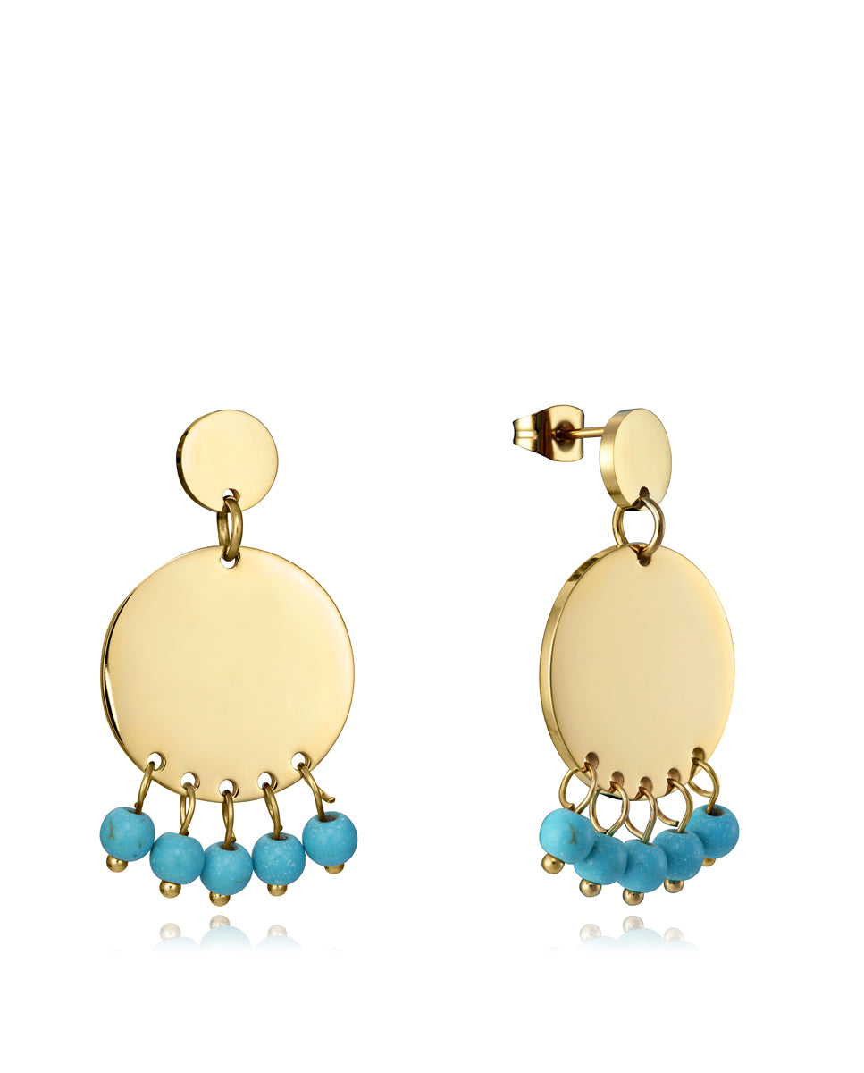 Pendientes Air de acero dorado con motivo de disco y perlas en azul
