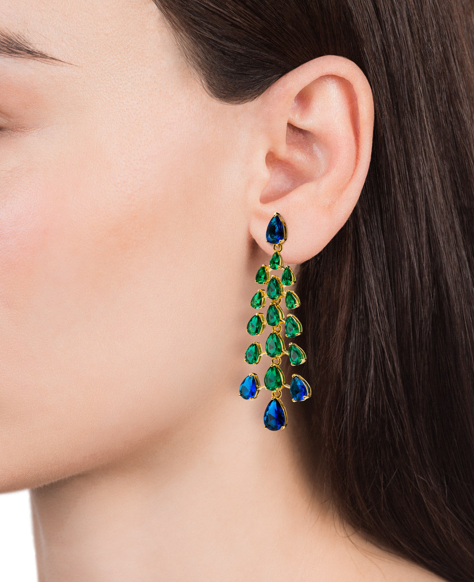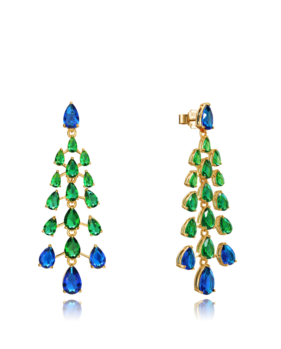 Pendientes Fiesta de plata de ley bañados en oro con cristales verdes y azules