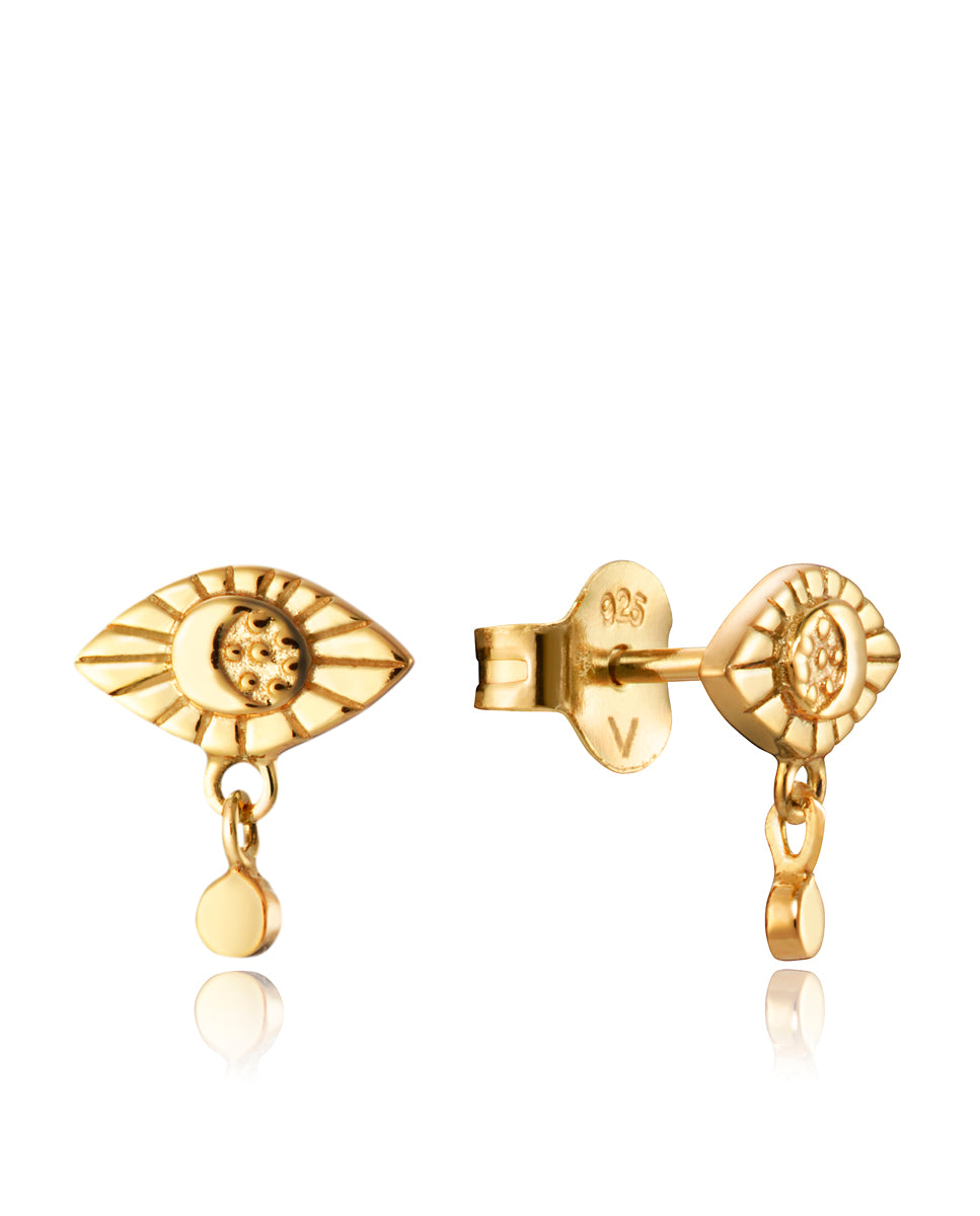 Pendientes Trend de plata de ley bañado en oro diseño ojo egipcio