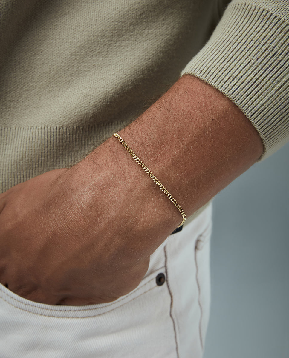 Límpiala con un paño especial para joyas o con un poco de agua templada con jabón neutro, evitando que la piel o el cordón entre en contacto con el agua.