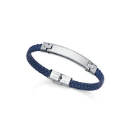 Pulsera de hombre Magnum de acero Ip negro y cuero negro trenzado