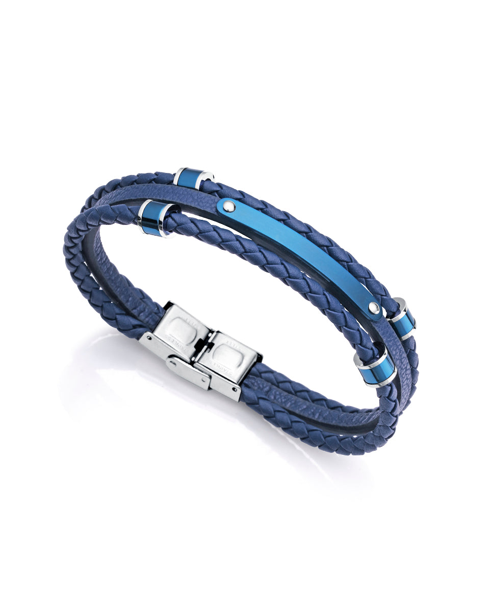 Pulsera de hombre Beat de acero con cuero trenzado azul