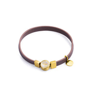 Límpiala con un paño especial para joyas o con un poco de agua templada con jabón neutro, evitando que la piel o el cordón entre en contacto con el agua.