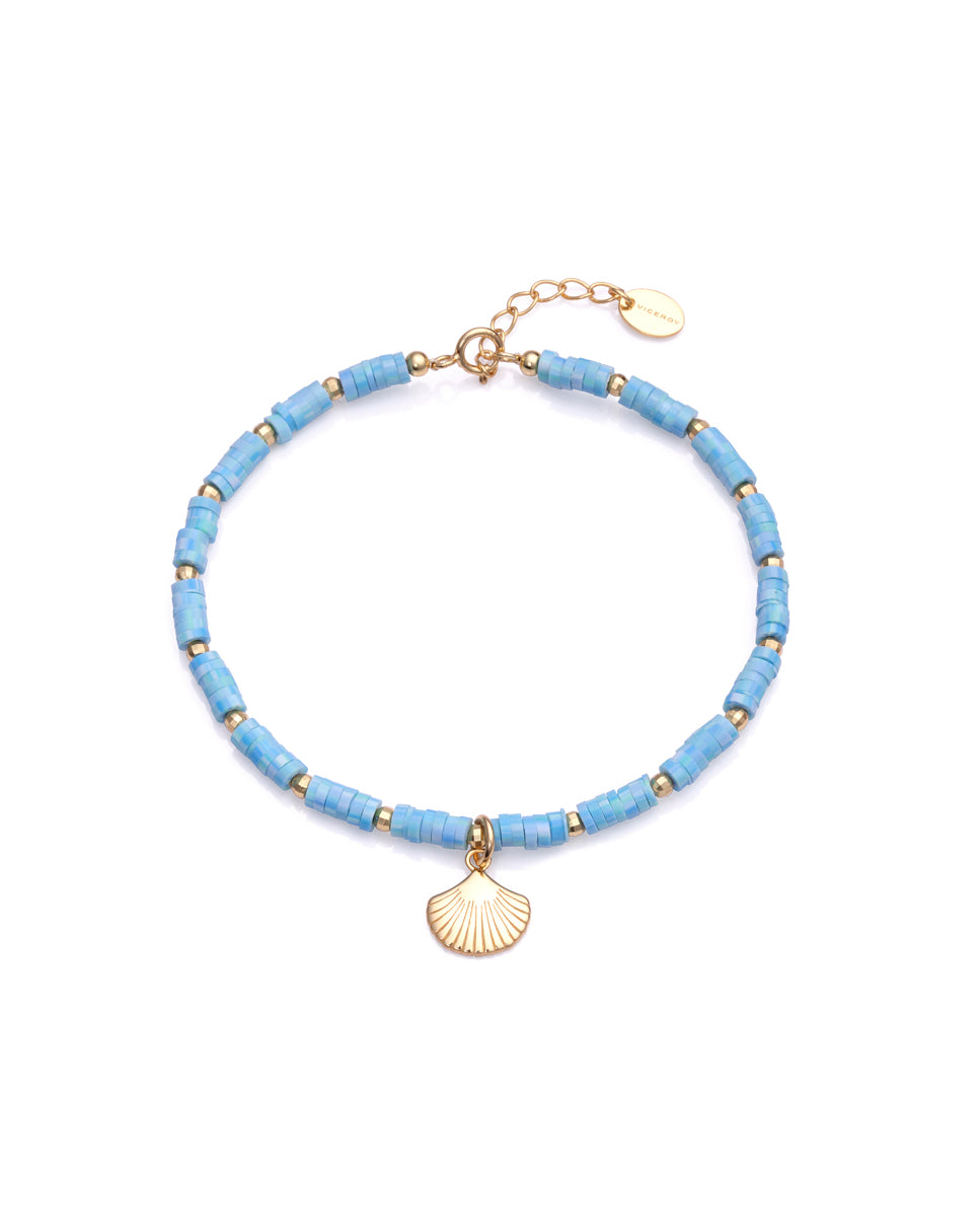 Pulsera Trend de plata de ley bañada en oro con piedras azules y concha