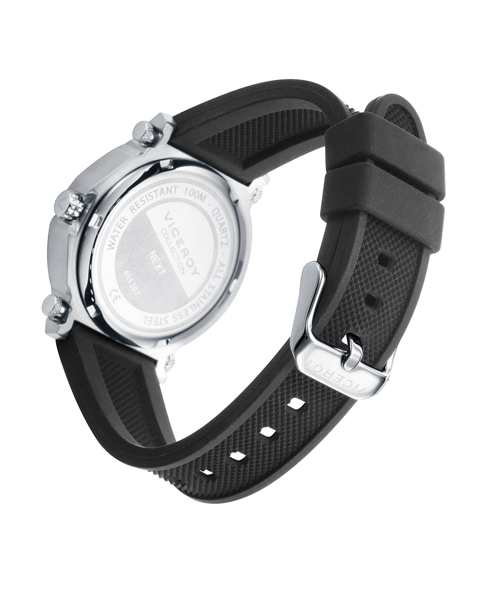 Reloj de niño Next con caja de acero y correa de caucho color negro