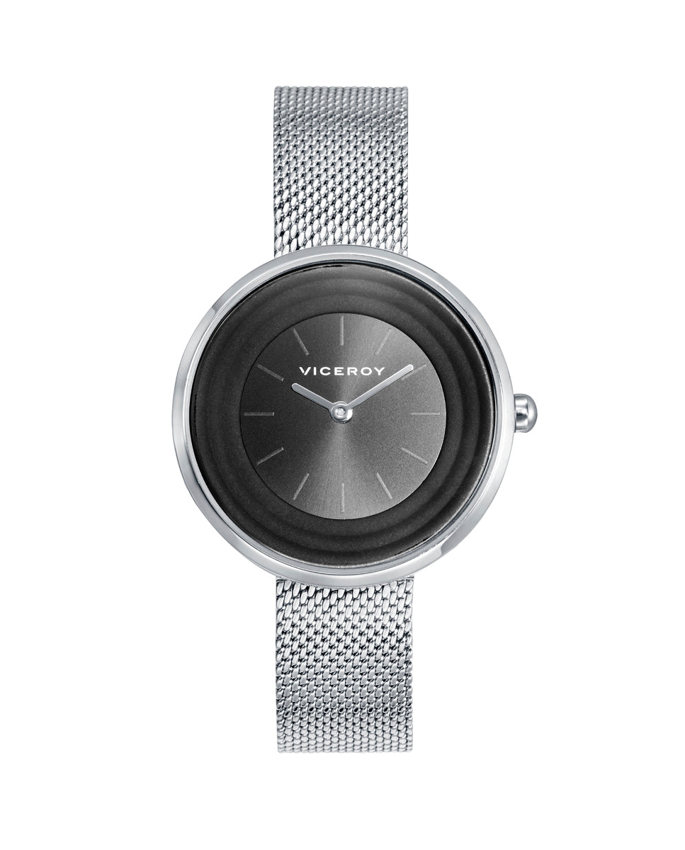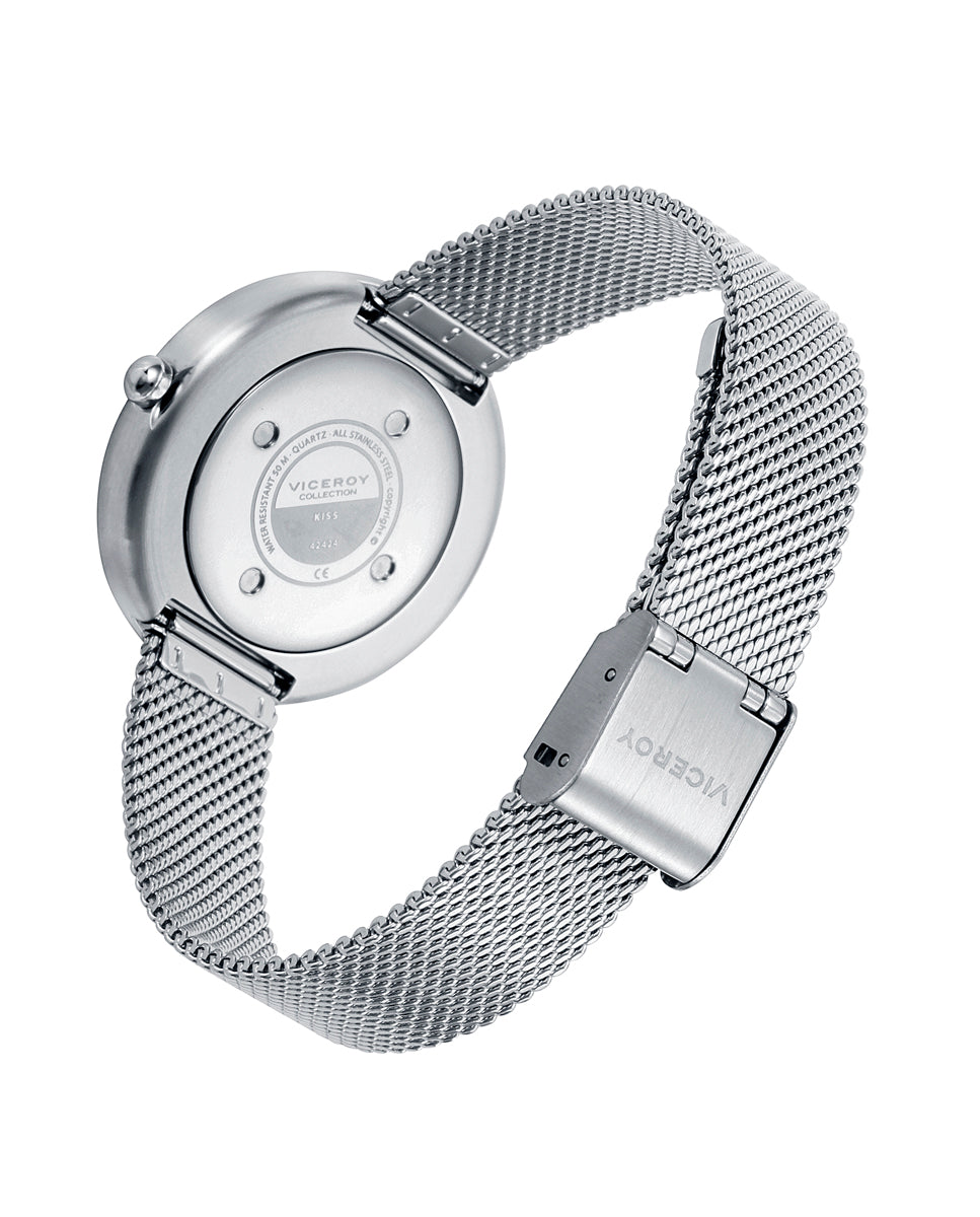 Reloj de mujer Kiss de acero con esfera negra y malla de acero