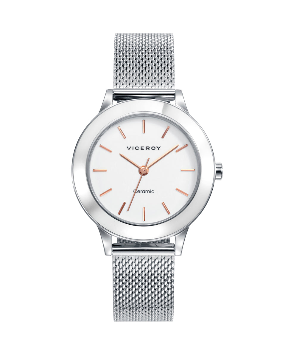 Reloj de mujer Cerámica de acero en blanco y malla milanesa