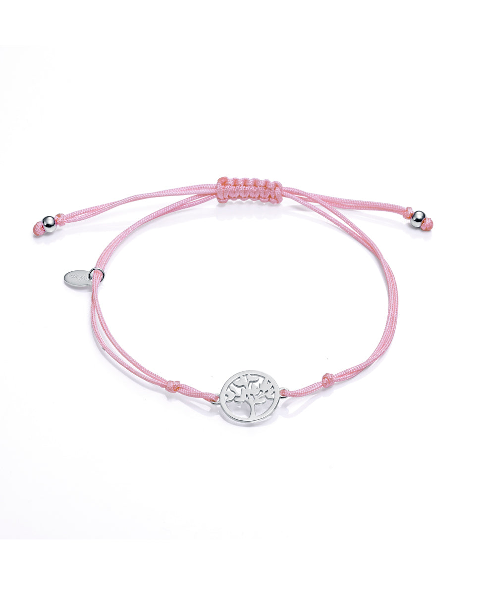 Reloj de correa de piel blanca tres agujas de niña. Pulsera de cordón rosa de nailon con motivo árbol de la vida de plata ley de regalo.