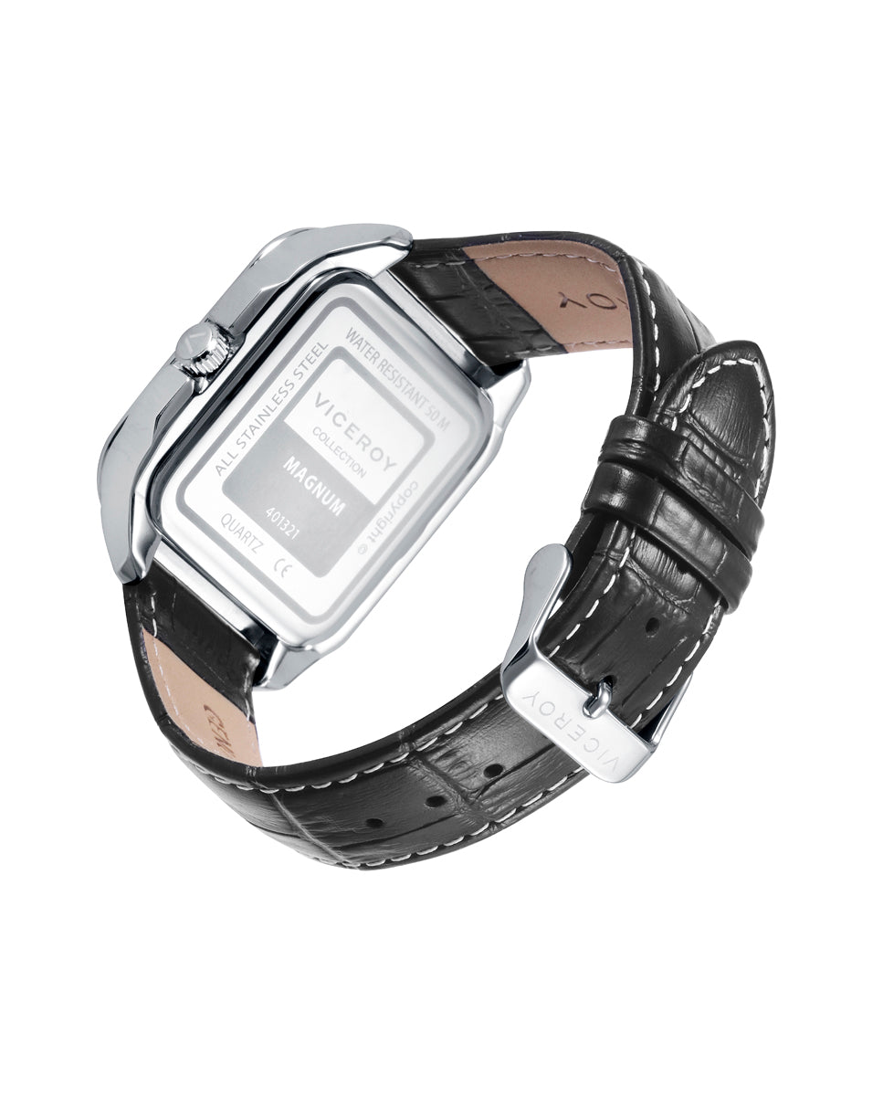 Reloj de Hombre Magnum caja de acero y correa de piel negra