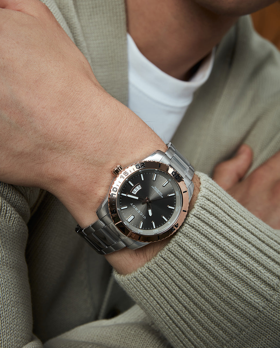Reloj caja bitono de acero Ip rosa 20 Atm, brazalete de acero, movimiento cuarzo