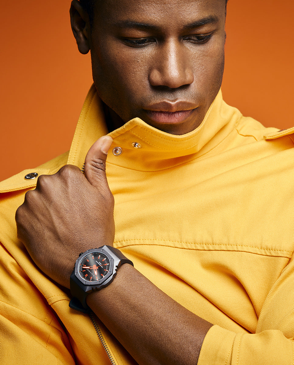 Reloj de hombre con caja de aluminio y correa de silicona negra