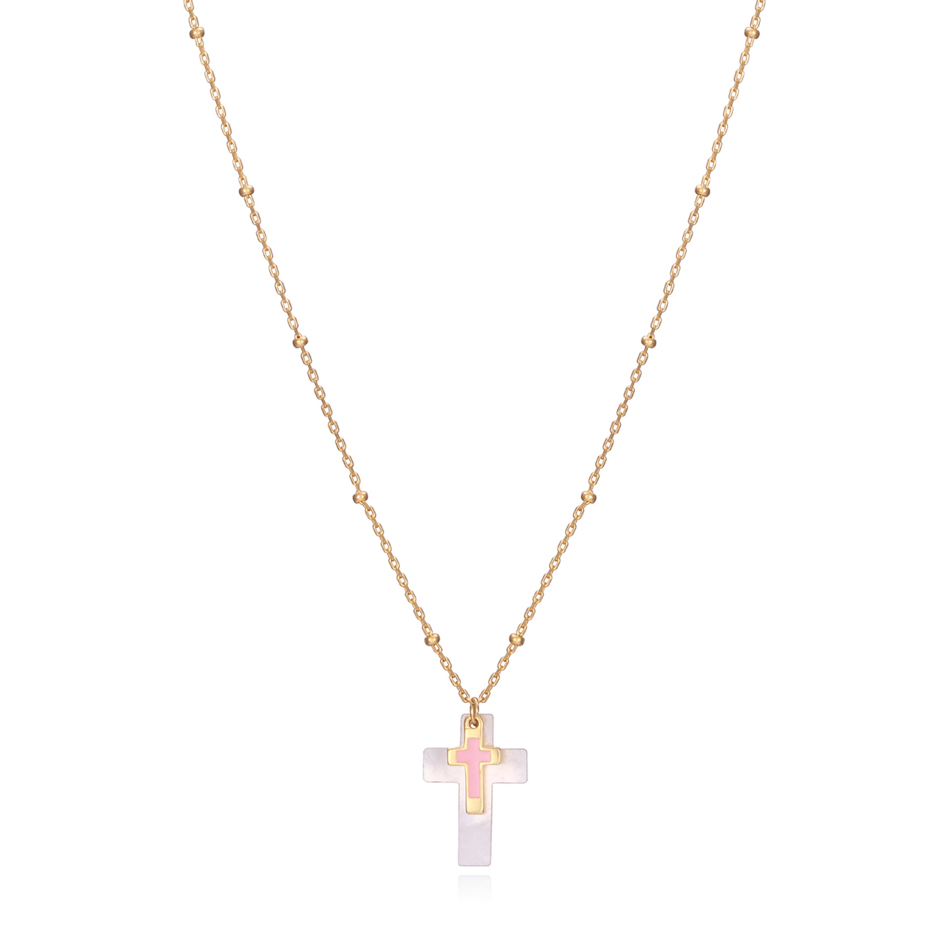 Doce pingente de prata banhado a ouro com cruz de madrepérola