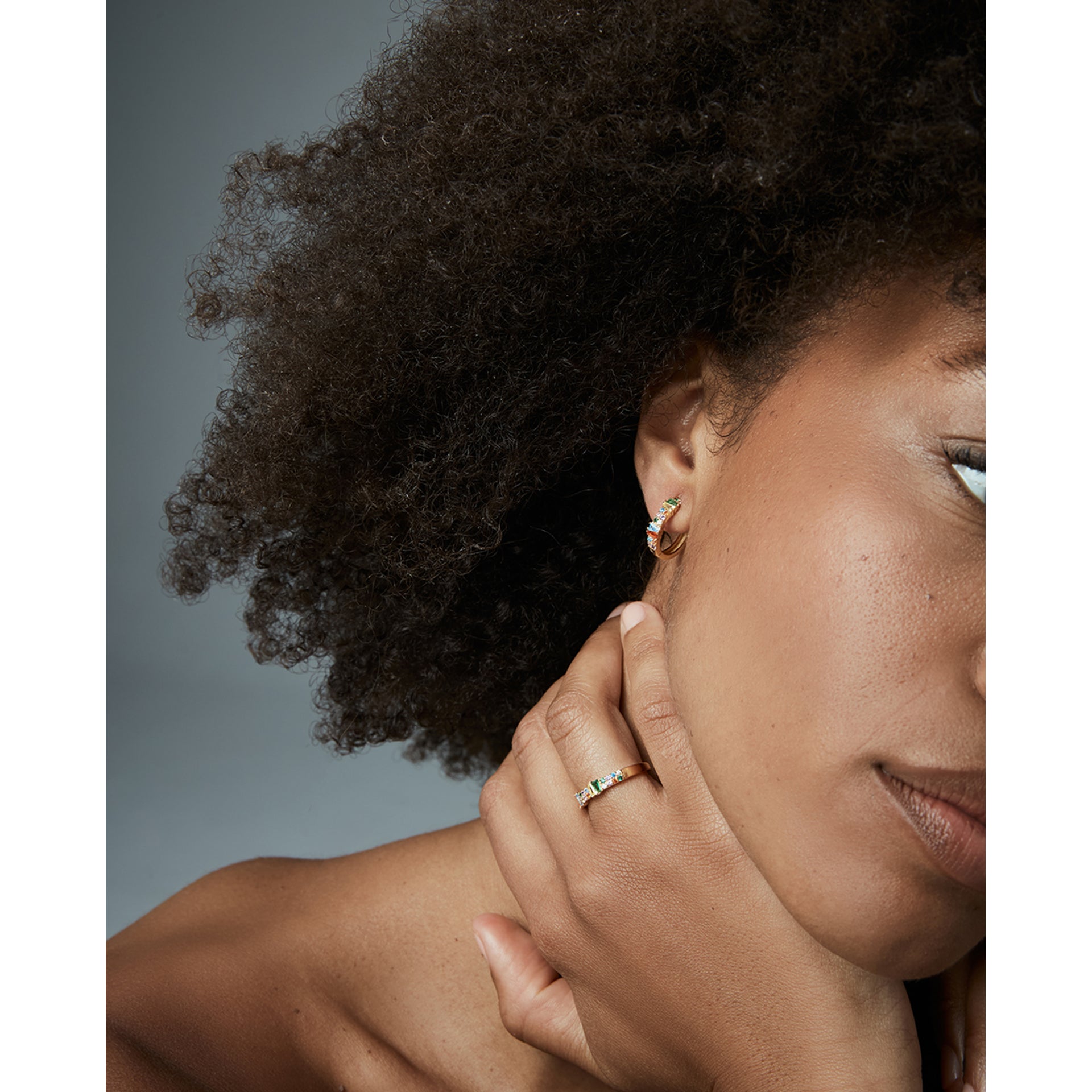 Anillo de plata de primera ley con baño de oro y circonitas de colores
