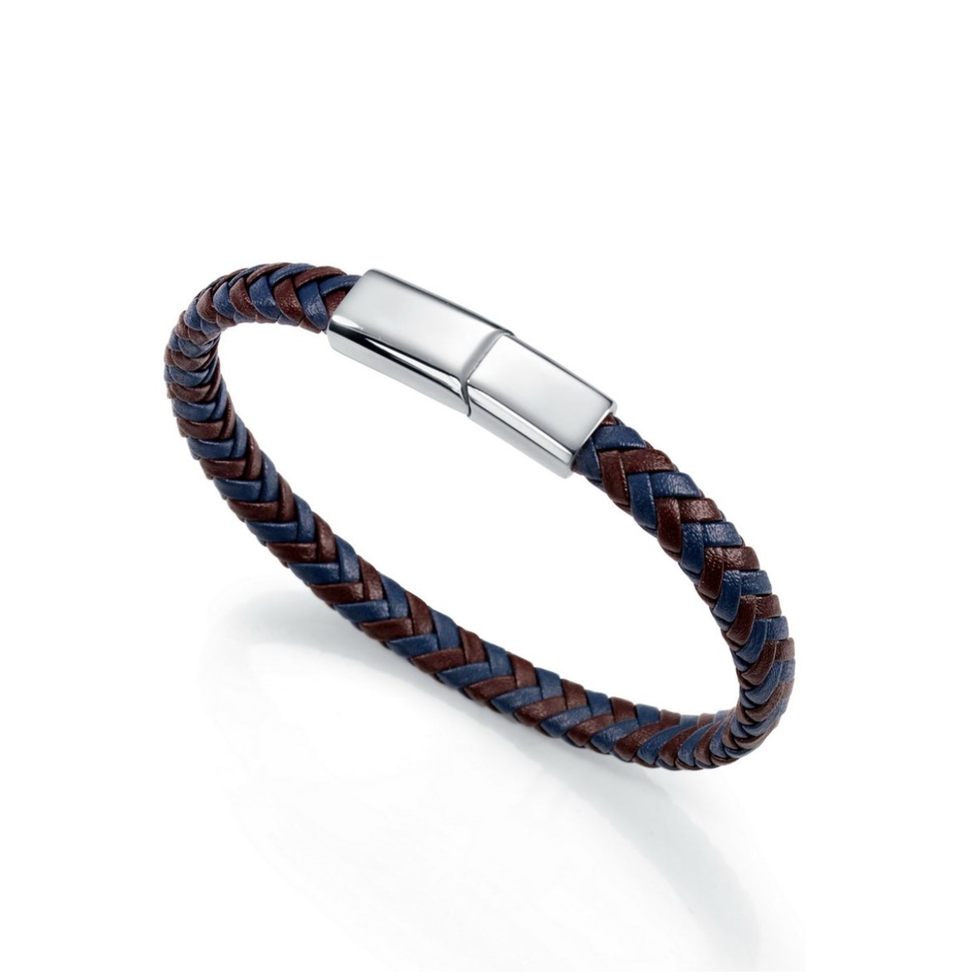 Pulseira masculina Air em couro trançado duplo marrom e aço
