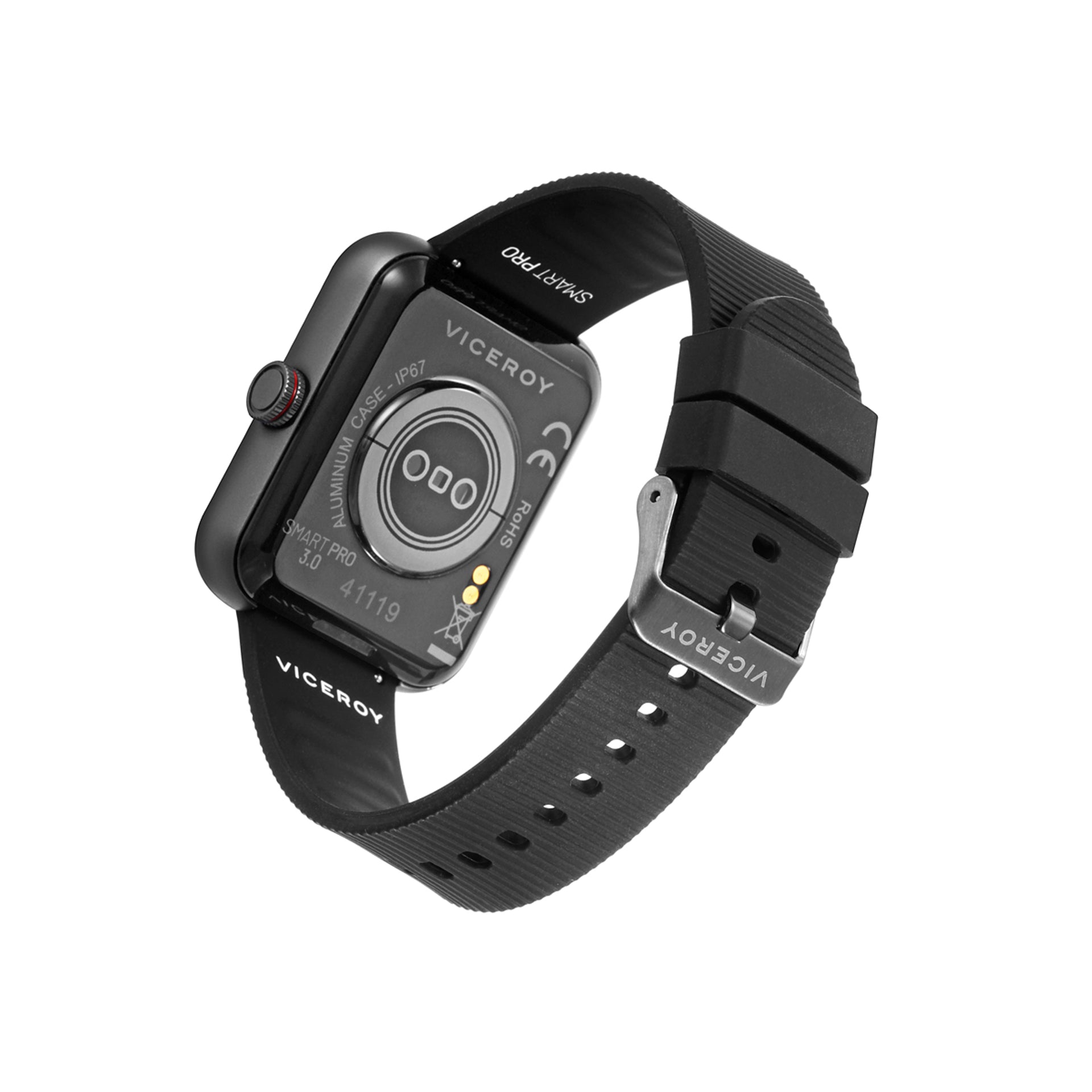 Relógio inteligente de alumínio com pulseira preta
