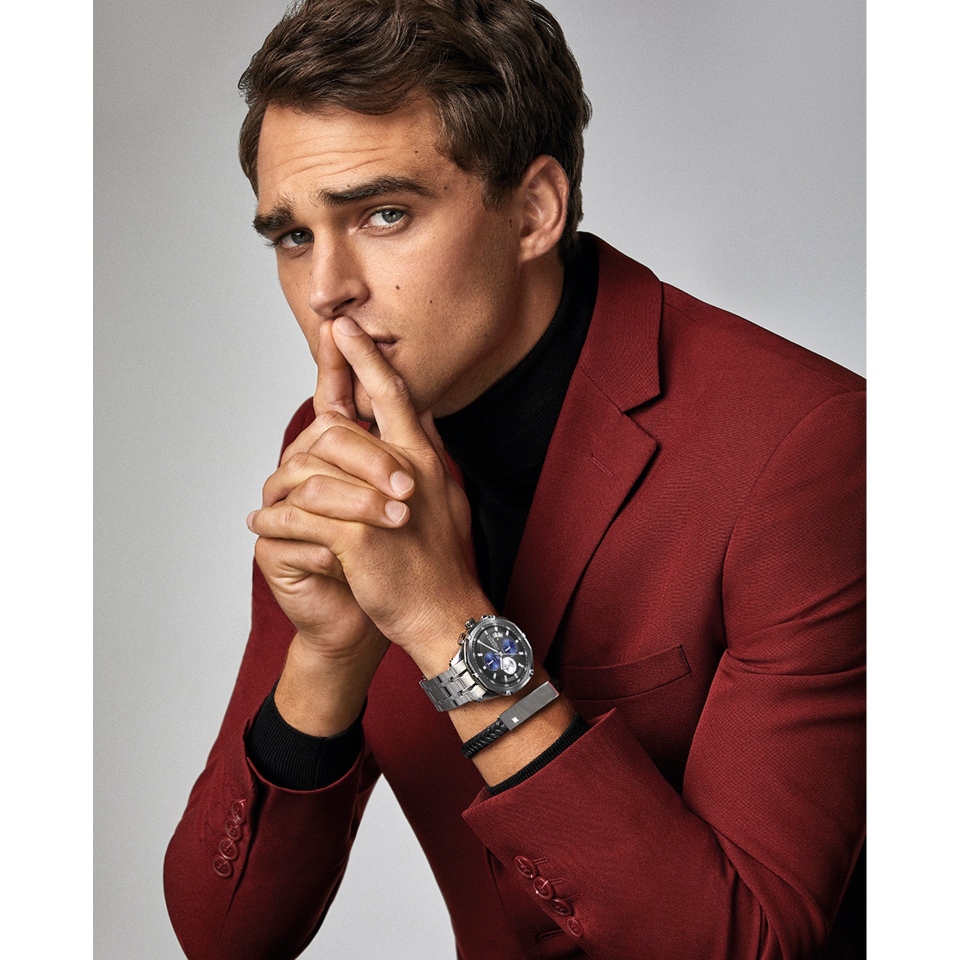 Pulseira em aço Magnum com couro trançado preto e marrom