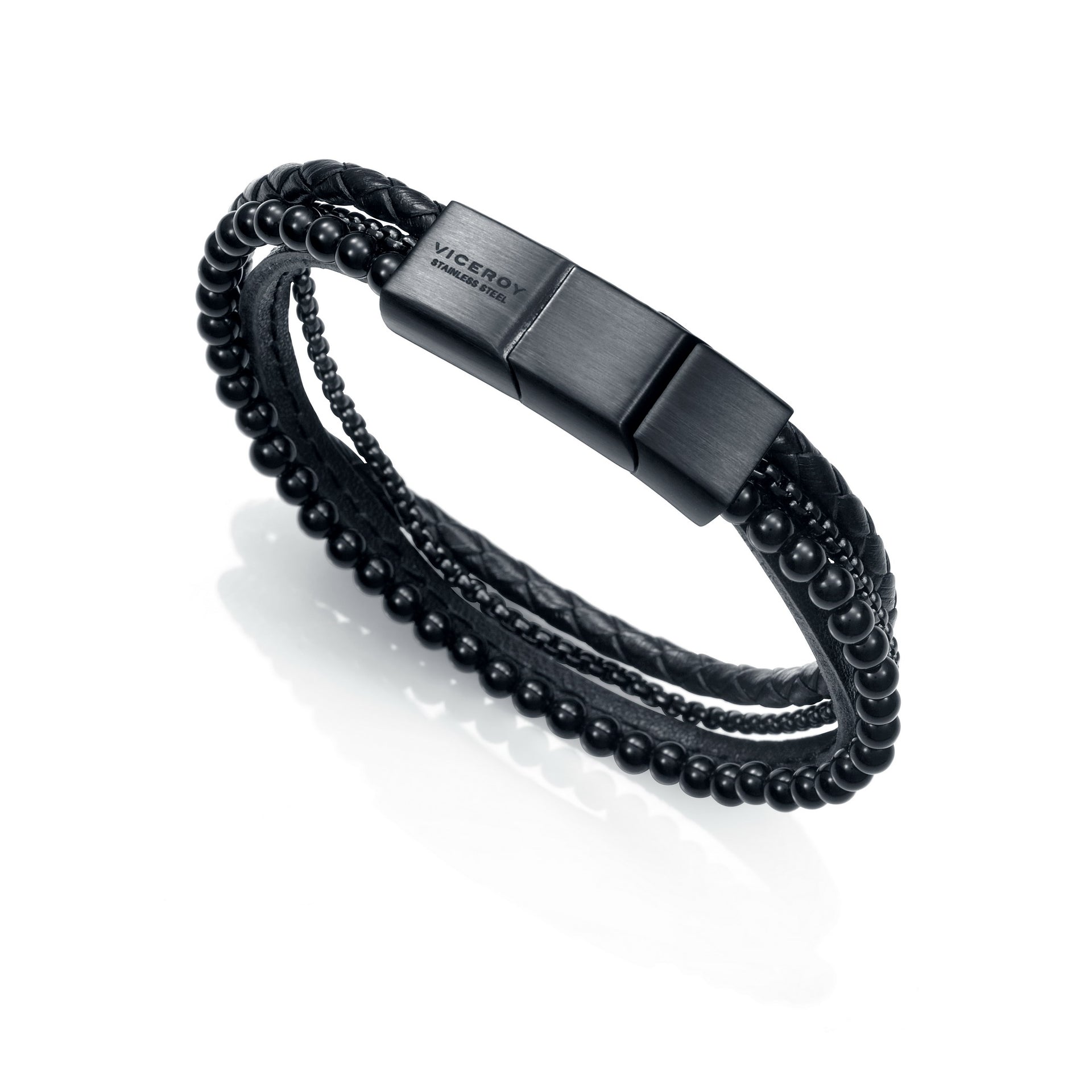 Pulsera Multiple Acero, Piel Y Ágata Sr Fashion