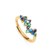 Anillo Elegant de plata de ley bañado en oro con tres filas de circonitas