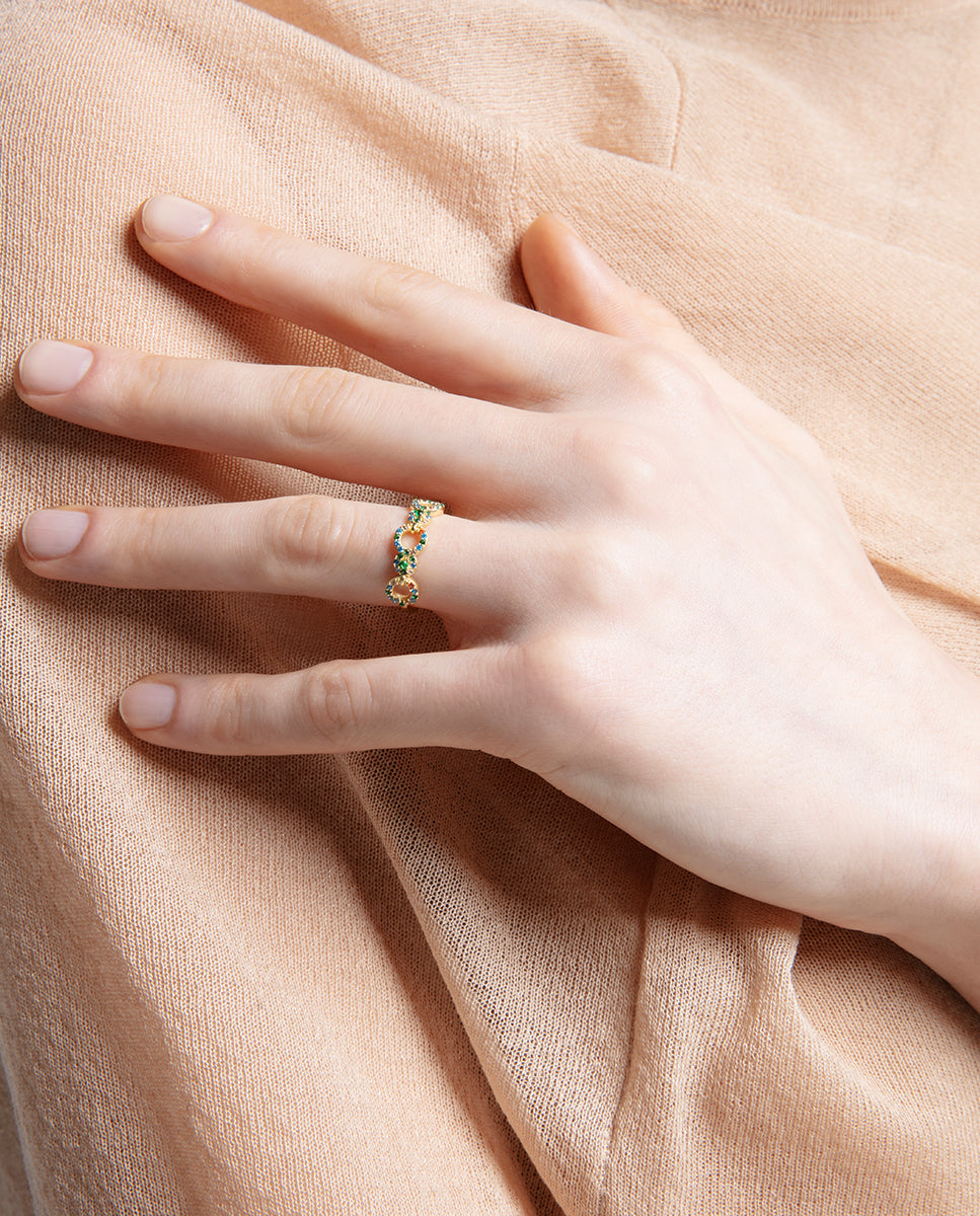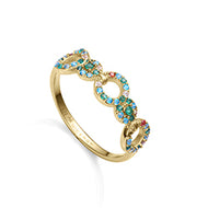 Anillo de plata de ley con baño de oro y círculos con circonitas de colores