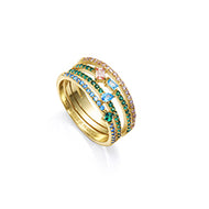 Anillo múltiple de plata de ley con baño de oro y con circonitas de colores