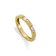 Anillo de plata de primera ley con baño de oro y cuatro circonitas baguette blancas