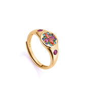 Anillo Elegant de plata de ley con baño de oro tipo sello con circonitas multicolor