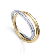 Anillo doble de plata de ley con baño de oro y rodio con fila de circonitas blancas
