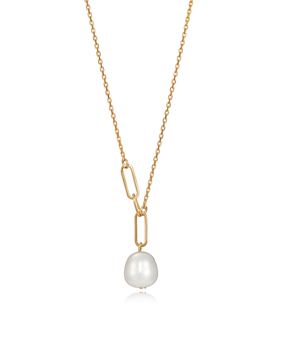 Collar Elegant de plata de ley bañada en oro y colgante de peral