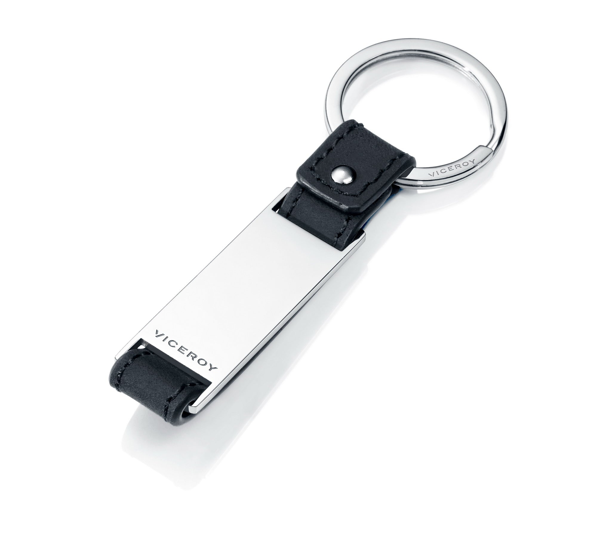 Chaveiro masculino em aço e couro preto