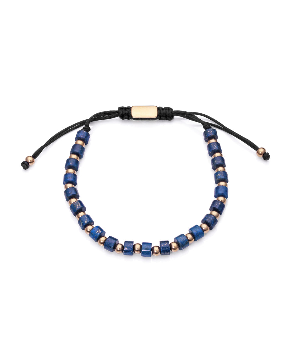 Pulseira Magnum em aço com lápis-lazúli e bolas IP douradas