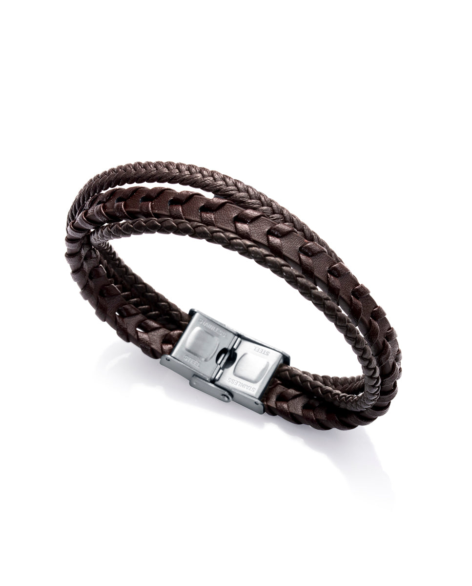 Pulseira masculina Magnum de aço com múltiplas tiras em marrom